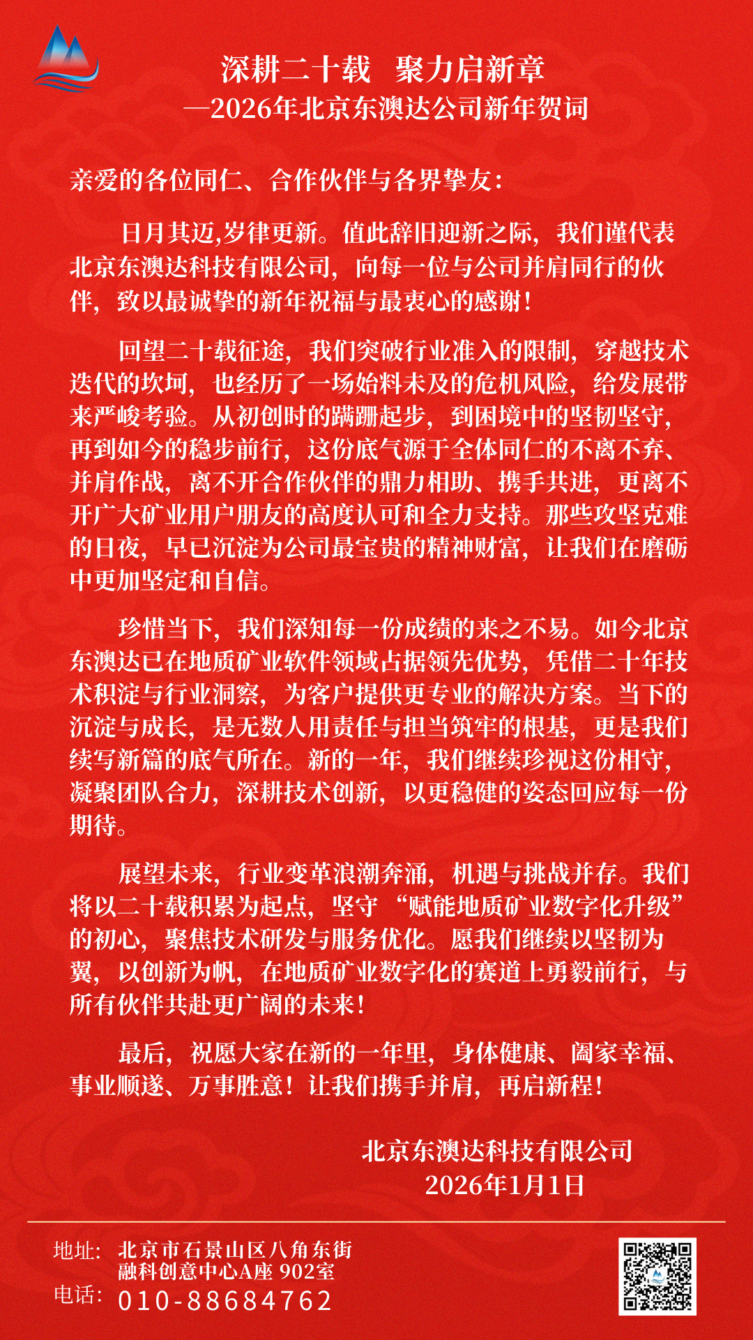 深耕二十载 聚力启新章—2026年北京东澳达公司新年贺词